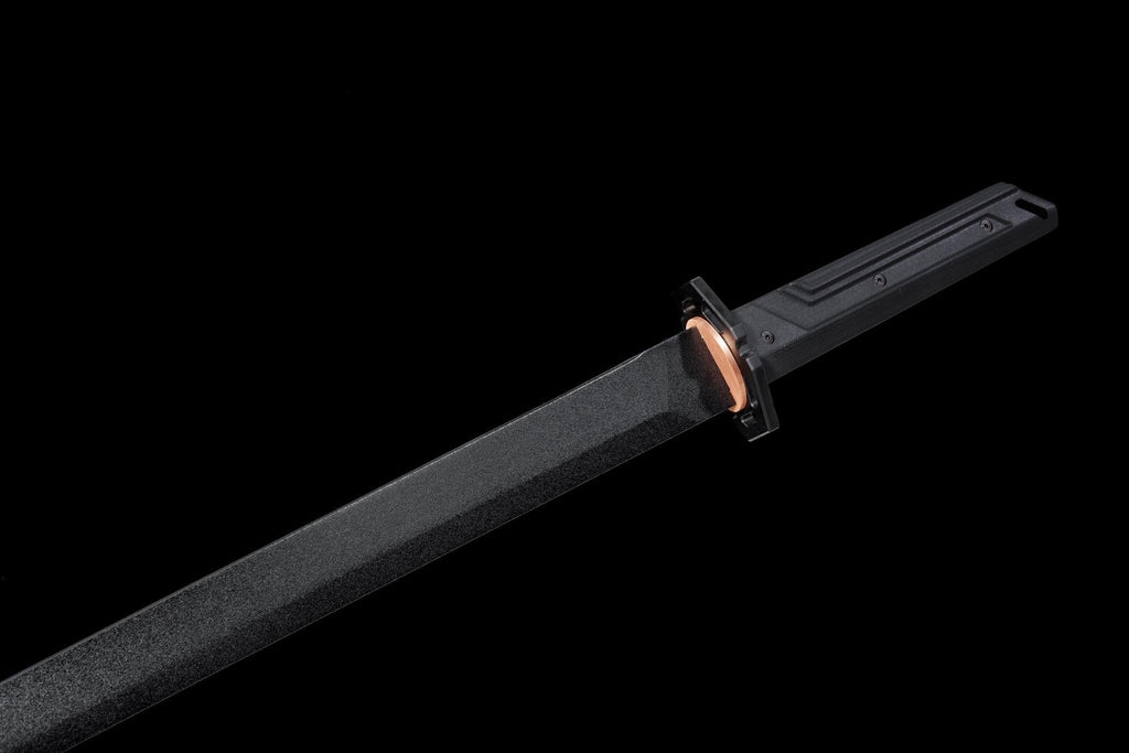 L’Épée Tactique Tranchant du Crépuscule est une lame moderne et épurée, conçue pour offrir une vitesse maximale, un contrôle optimal et une efficacité de coupe remarquable. Dotée d’une longue lame de 60 cm forgée en acier 9SiCr à haute teneur en carbone, elle assure une excellente durabilité, une rétention de tranchant supérieure et une résistance exceptionnelle à la déformation sous contrainte.
