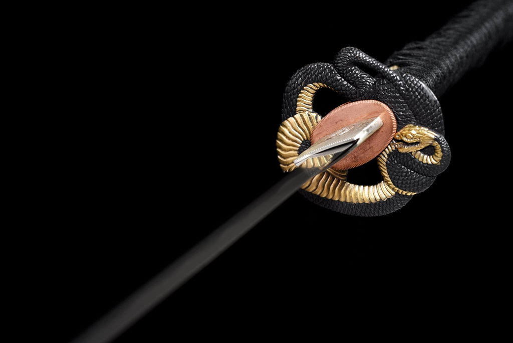 Chaque détail — du hamon poli miroir aux motifs de serpent sculptés à la main — reflète l'équilibre entre puissance et grâce que l'on trouve dans l'esprit guerrier. Ce n'est pas qu'un katana ; c'est une déclaration de domination et de raffinement.