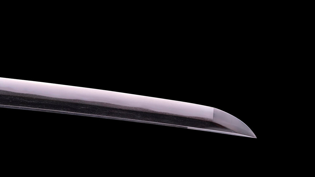 L'esthétique de la lame prend ses racines dans la tradition Mino-den, présentant un grain itame dense et parfaitement forgé. Le hamon est un gunome-midare magistral, révélant un nioikuchi brillant et vaporeux, marque de fabrique des forgerons Shimosaka qui servaient les plus hauts rangs du Shogunat Tokugawa.
